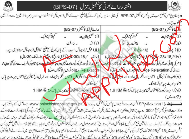 Applications must be submitted by June 15, 2025. Don’t wait till the last minute! Balochistan Police Jobs 2025